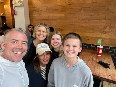 After the movie, we met our high school friend Donna at Shake Shack. Donna actually lives in north Dallas, but she used to live in Manhattan and still has an apartment there. We had lunch with her in NYC 20 years ago too, so I guess it's a tradition now. She was passing through New York for a few days on her way home from a trip to Paris so we took the opportunity to meet up. This isn't the first time that we have gotten together in a faraway city with friends who actually live near us yet we rarely see. Go figure.