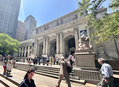 We still had some time to kill before our tour so we decided to check out the NY Public Library, but first we used some fancy bathrooms. I had read that Bryant Park had some nice public restrooms and the secret is out because the line was long. The toilets had automatic seat covers. I’ve never seen these before and now I think all toilets should have them! I’m not in the habit of taking pictures inside bathrooms, but this one was impressive.